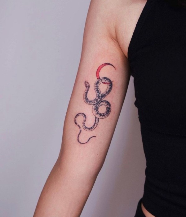 性感美女大腿部细腻漂亮的蛇纹身图片