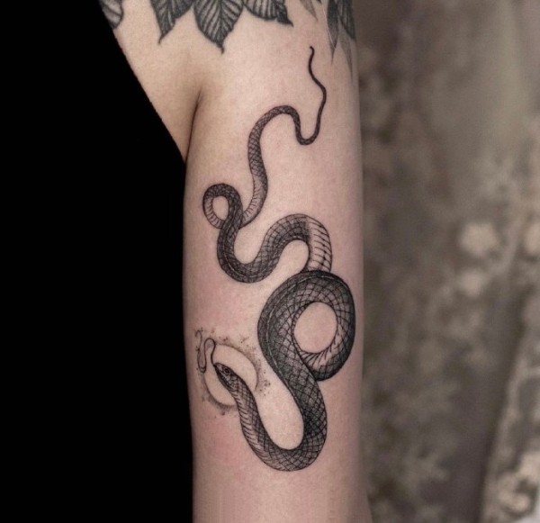 黑色和白色手臂眼镜蛇纹身动物几何点刺纹身图案