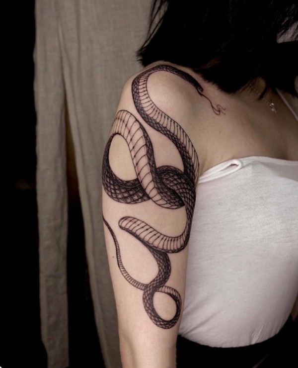 黑色和白色手臂眼镜蛇纹身动物几何点刺纹身图案