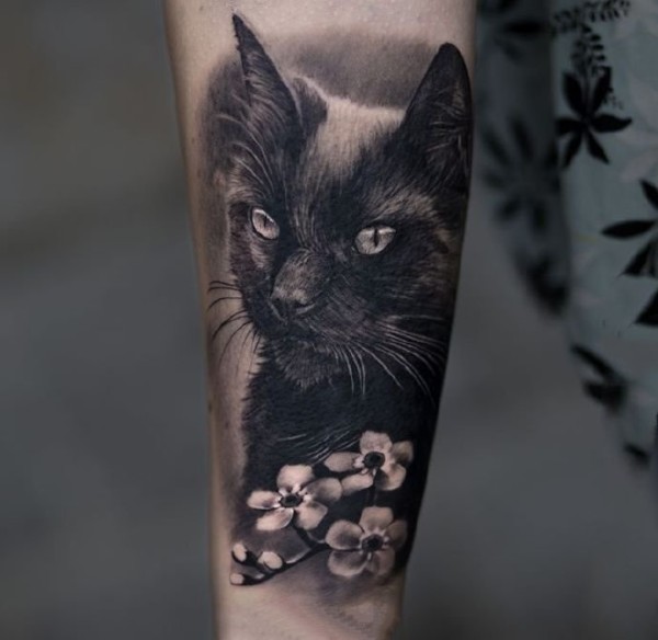 手背猫纹身:9张大花手背的猫纹身图案赏析
