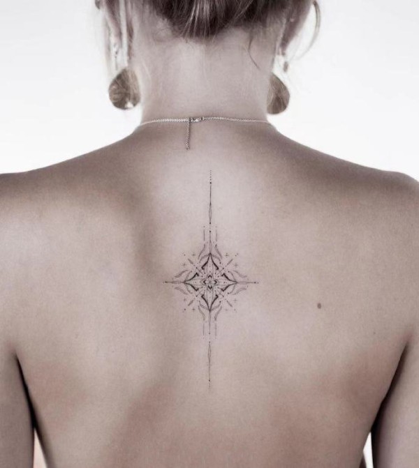 女生后腰纹身黑白灰风格抽象线条纹身图案