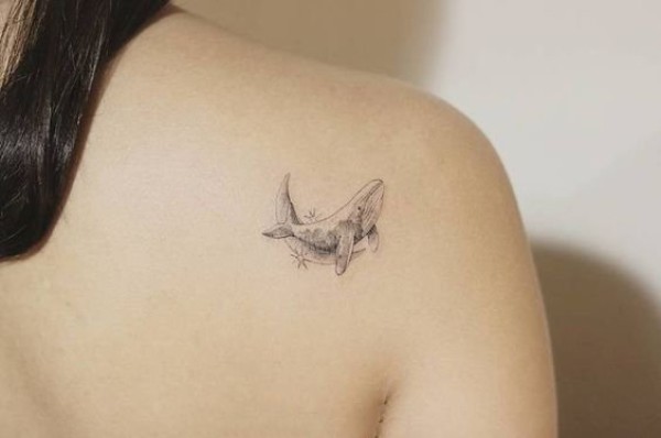 萌萌的鲸鱼纹身--适合女生的小清新鲸鱼纹身图案作品