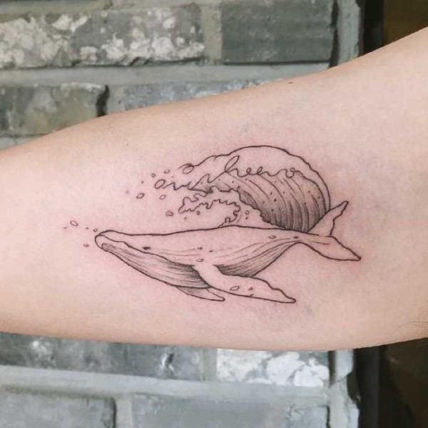 萌萌的鲸鱼纹身--适合女生的小清新鲸鱼纹身图案作品