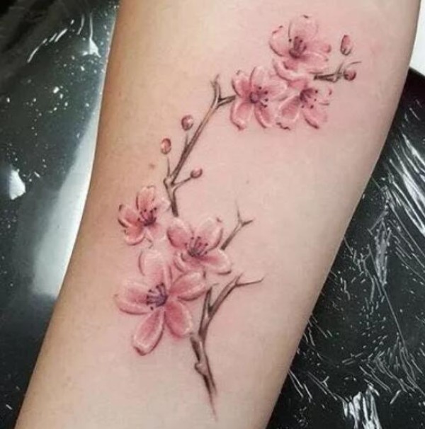 纹在手臂胳膊上的黑灰素花花卉纹身图案欣赏