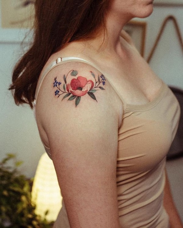 适合女生的彩色花卉纹身图片9张
