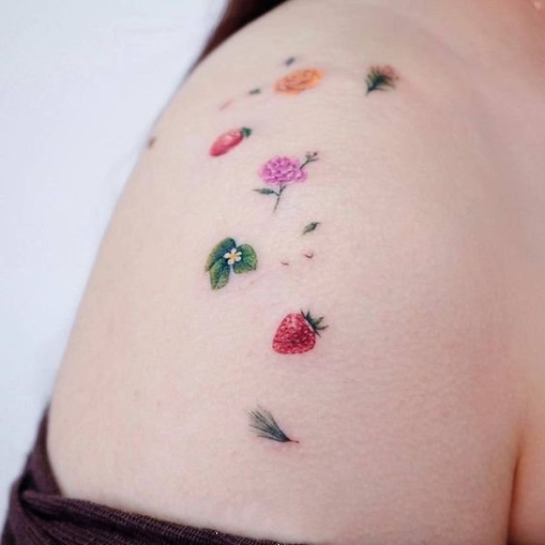 彩色的可爱卡通纹身小图美味的食物纹身图案
