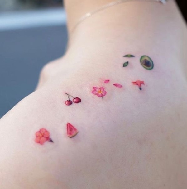 彩色的可爱卡通纹身小图美味的食物纹身图案