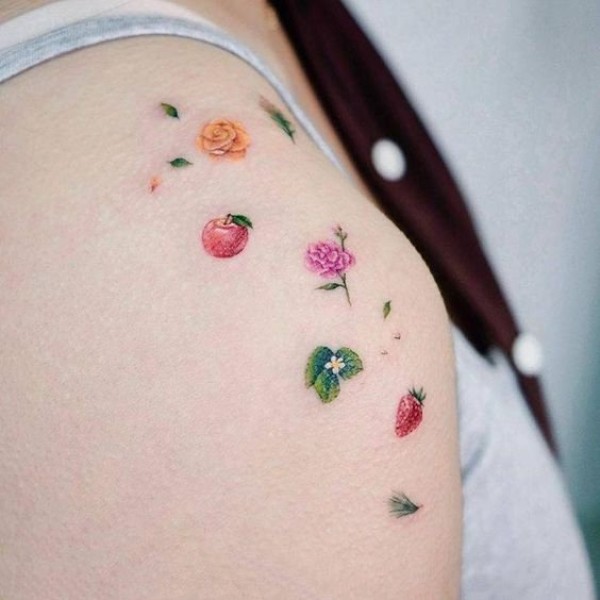 彩色的可爱卡通纹身小图美味的食物纹身图案