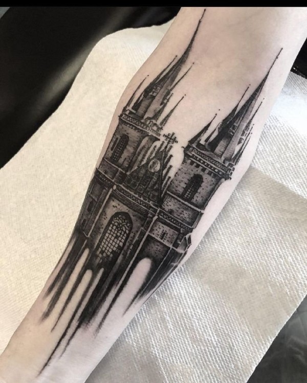 欧美城堡纹身 男生手臂上欧美城堡纹身图片