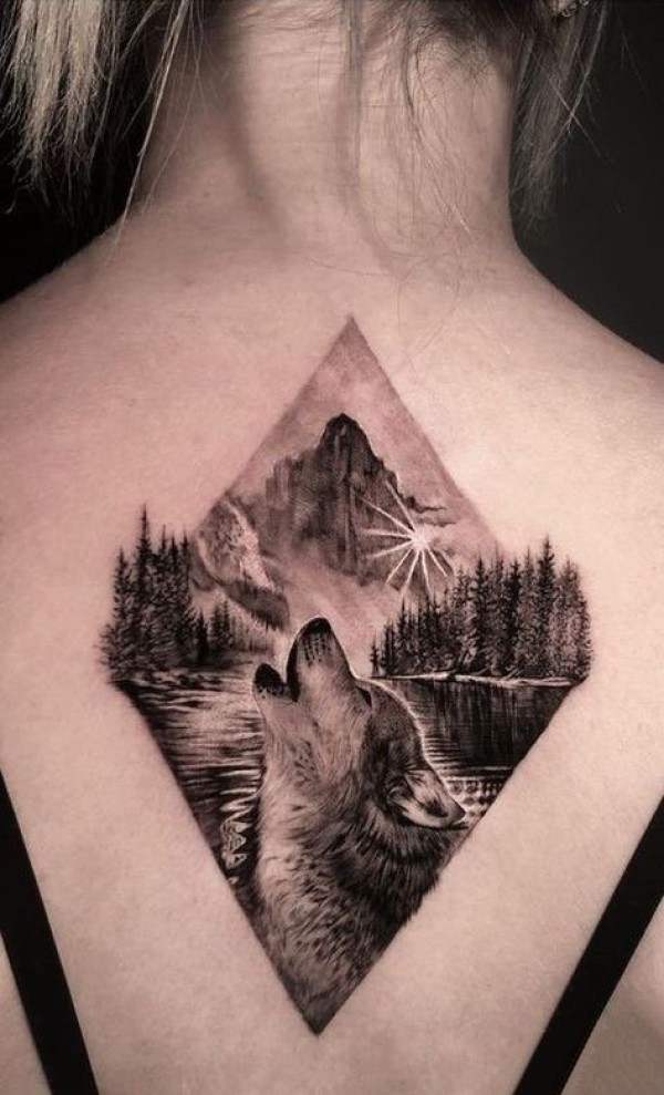 满背动物纹身 女生满背彩绘的动物纹身图片