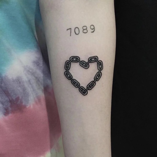 心形纹身情侣 情侣手腕上黑色的心形纹身图片