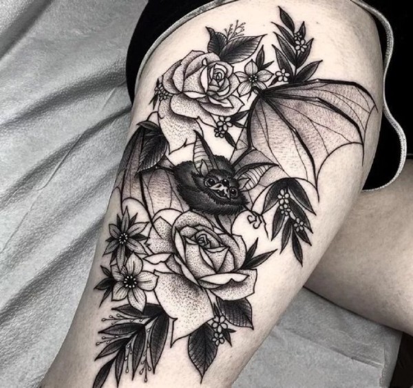 逼真的超现实主义花纹身图案来自纹身师莫拉莱斯