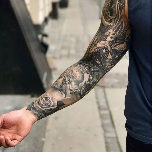 9张黑色系的写实花臂纹身图片