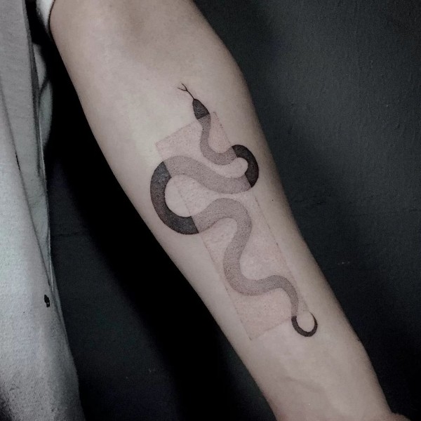 黑色和白色手臂眼镜蛇纹身动物几何点刺纹身图案
