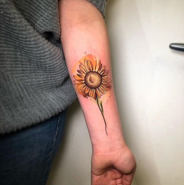 适合女生的一组很漂亮的小清新向日葵纹身图