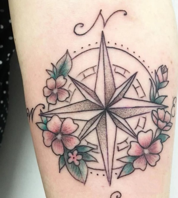 纹身指南针 水彩与线条结合的指南针纹身图案