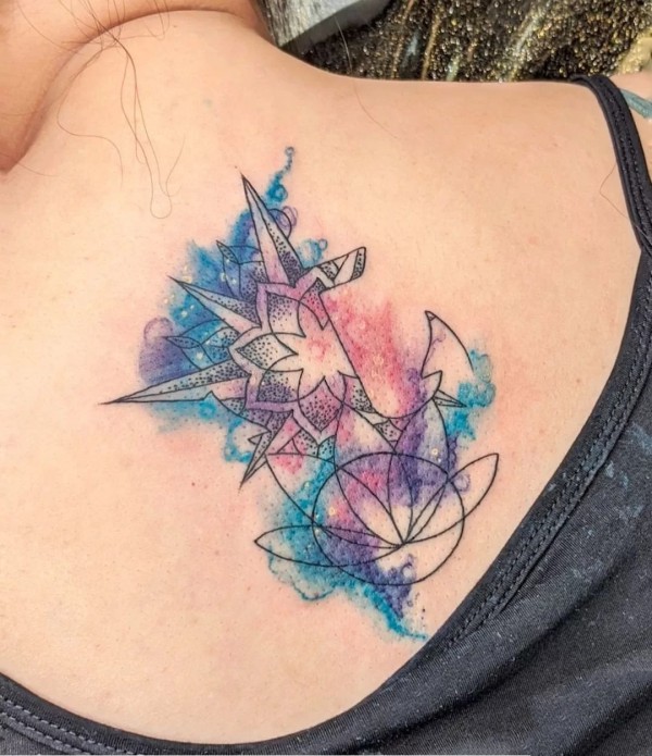 纹身指南针 水彩与线条结合的指南针纹身图案