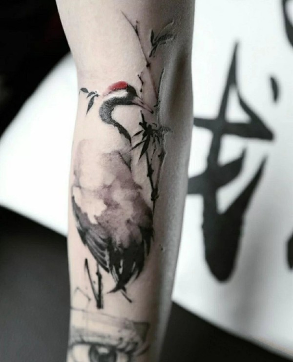 仙鹤纹身--中国风水墨元素的一组仙鹤纹身图案作品