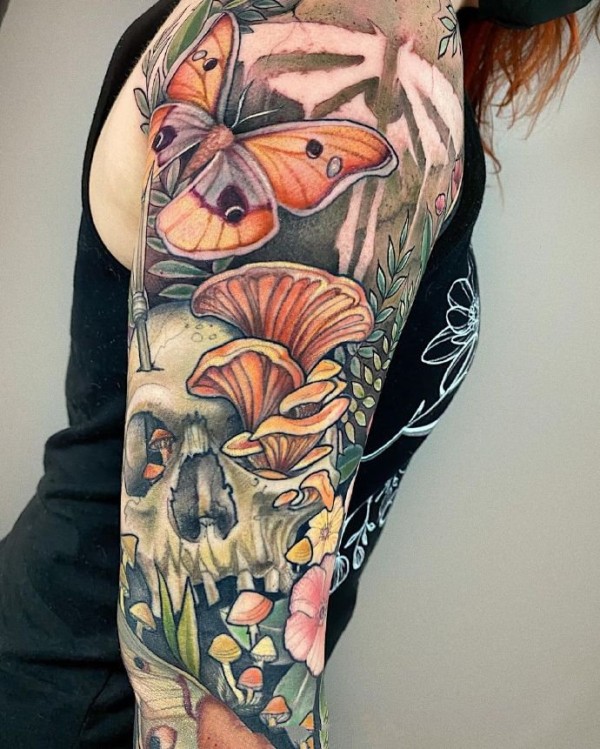 欧美newschool风格的手臂彩色纹身图