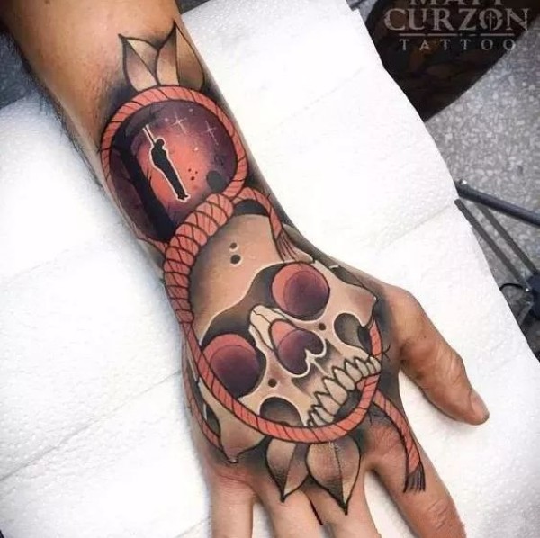 手背上的一组彩色school纹身图片