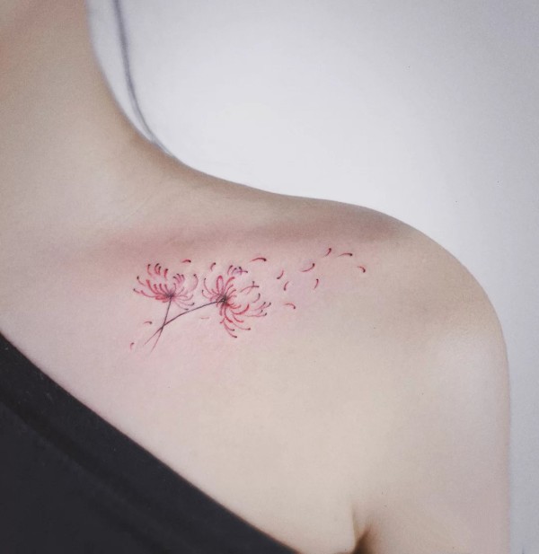 锁骨处美丽而骄傲的彼岸花纹身图案