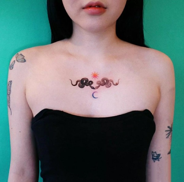 15款女神纹身小清新纹身月亮简单个性线条纹身图案