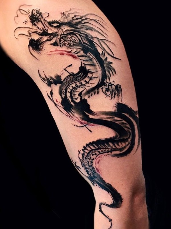 小腿部中国古代神兽龙纹身_龙纹身图案大全_纹身图吧