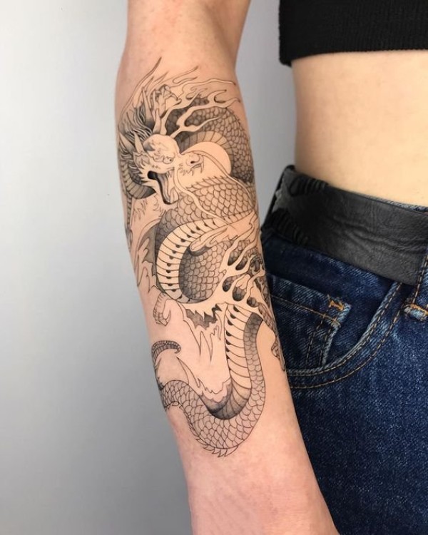 披肩龙纹身图案图片_龙纹身图案大全_纹身图吧