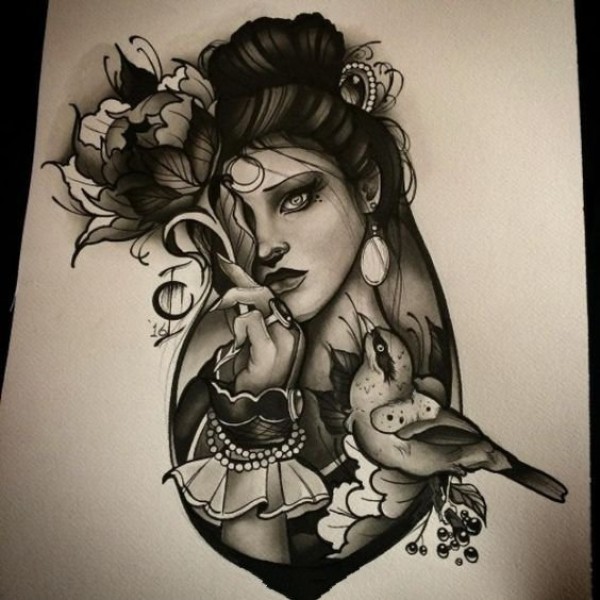 能面万媚纹身手稿_52张日式能剧面具纹身手稿图案素材欣赏