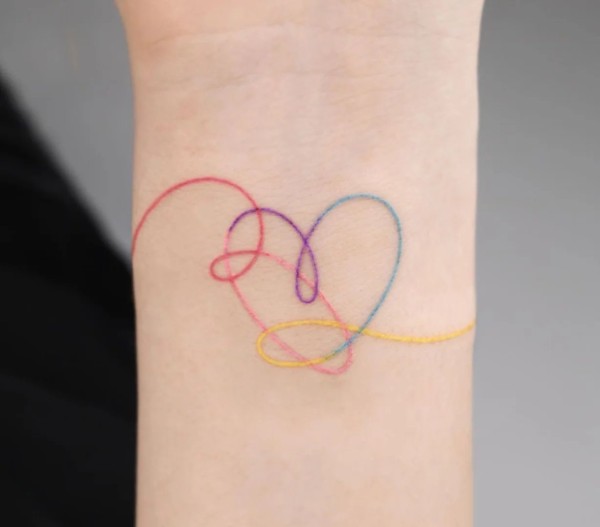 心形纹身情侣 情侣手腕上黑色的心形纹身图片