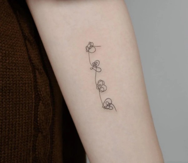 爱心小纹身--一组花花草草组成的心形小清新纹身图案