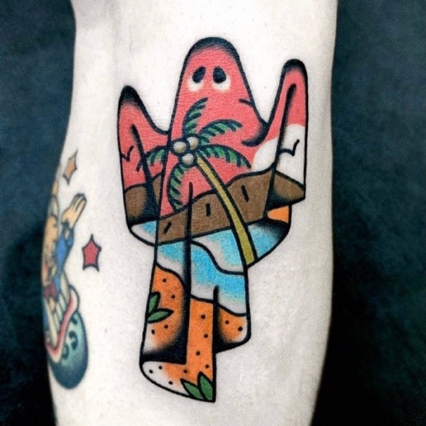 幽灵纹身图案 男生手臂上黑色的卡通幽灵纹身图片