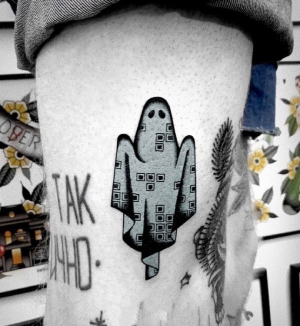 幽灵纹身图案 男生手臂上黑色的卡通幽灵纹身图片