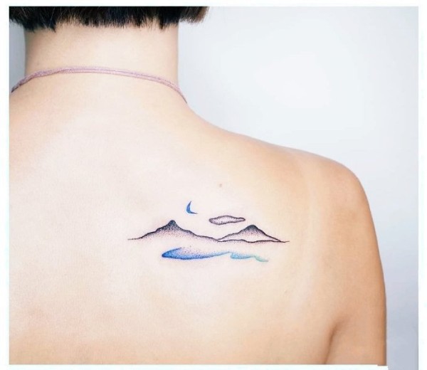 山水纹身图案 9组层峦叠嶂的山脉纹身图案