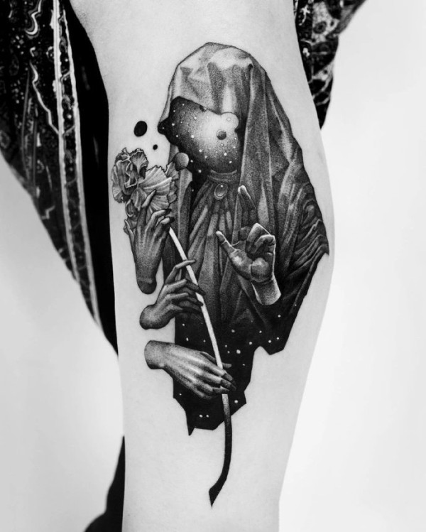 花腿纹身--一组大黑腿纹身图案作品欣赏