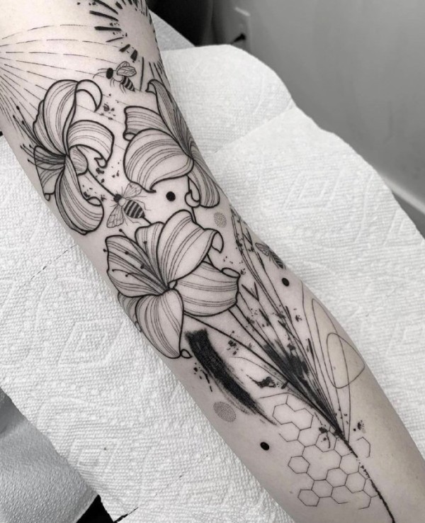 点线纹身 设计感极强的写实与抽象结合的纹身图片