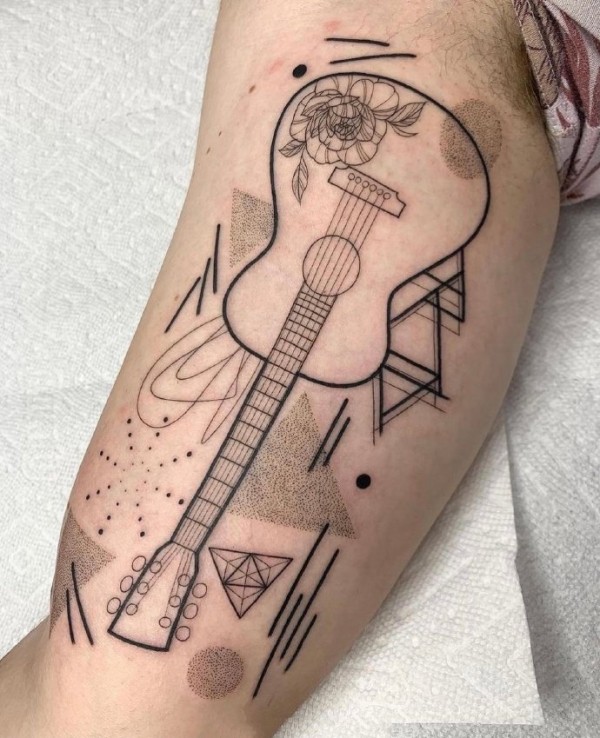点线纹身 设计感极强的写实与抽象结合的纹身图片