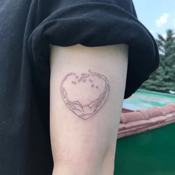 女生锁骨下黑灰素描点刺技巧创意比心纹身图片