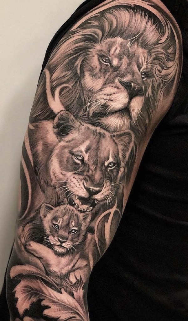 狮头虎头纹身 9组逼真的手臂包臂写实虎头和狮子头纹身图案