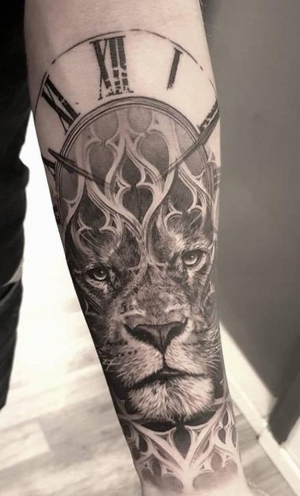 狮头虎头纹身 9组逼真的手臂包臂写实虎头和狮子头纹身图案