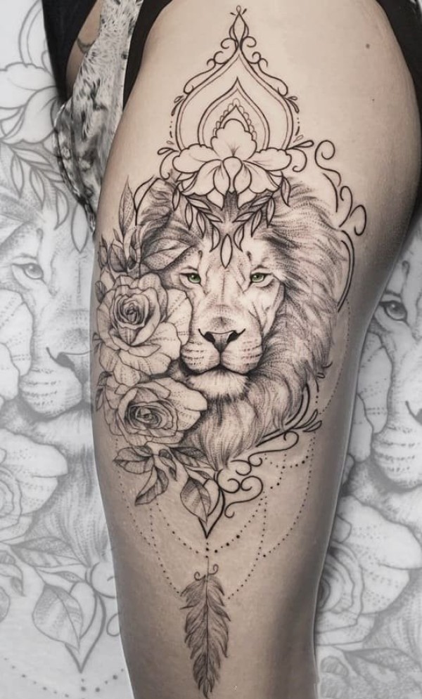 狮子纹身图--十二星座之狮子座的创意狮子纹身图案