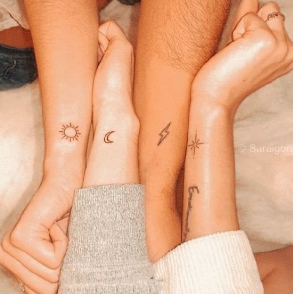 一组适合闺蜜姐妹情侣的简约手臂小清新纹身图案