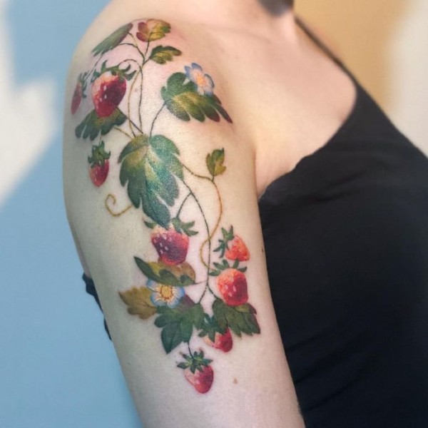 水果纹身小清新图片 酸甜可口的清新草莓纹身图案