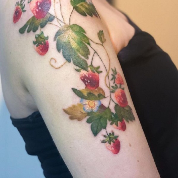 水果纹身小清新图片 酸甜可口的清新草莓纹身图案