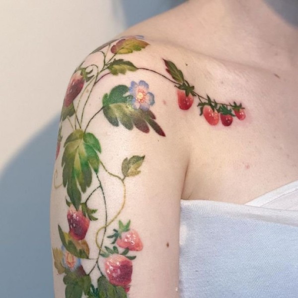 肩部草莓纹身图案