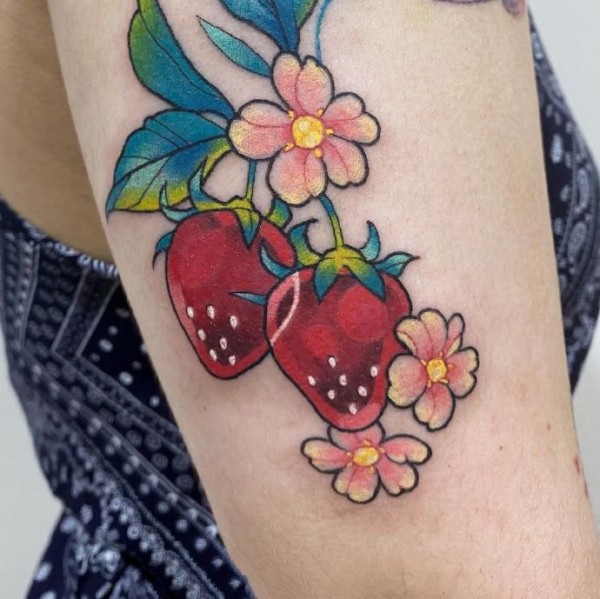 水果纹身小清新图片 酸甜可口的清新草莓纹身图案