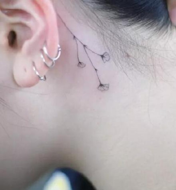 女生耳后小清晰彩色花纹身图片由纹身提供