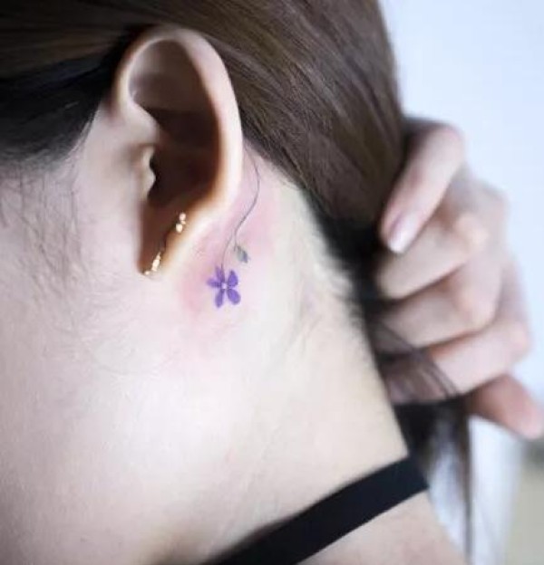 女生耳后小清晰彩色花纹身图片由纹身提供