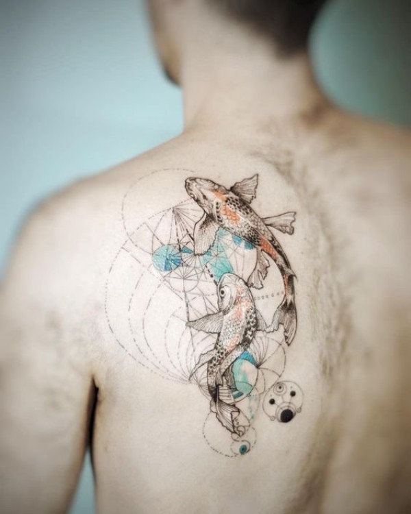 双鱼座纹身手稿_45张十二星座之双鱼手稿纹身图案