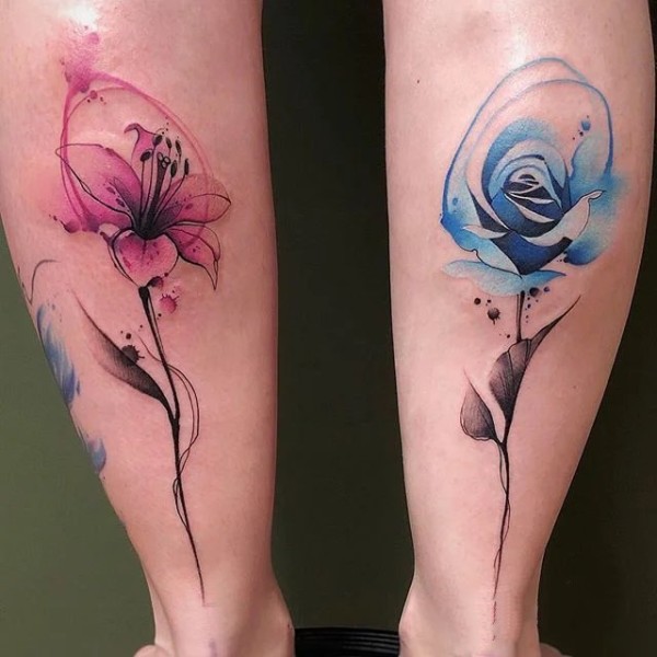 性感花朵纹身--女性大腿侧部性感的花朵纹身